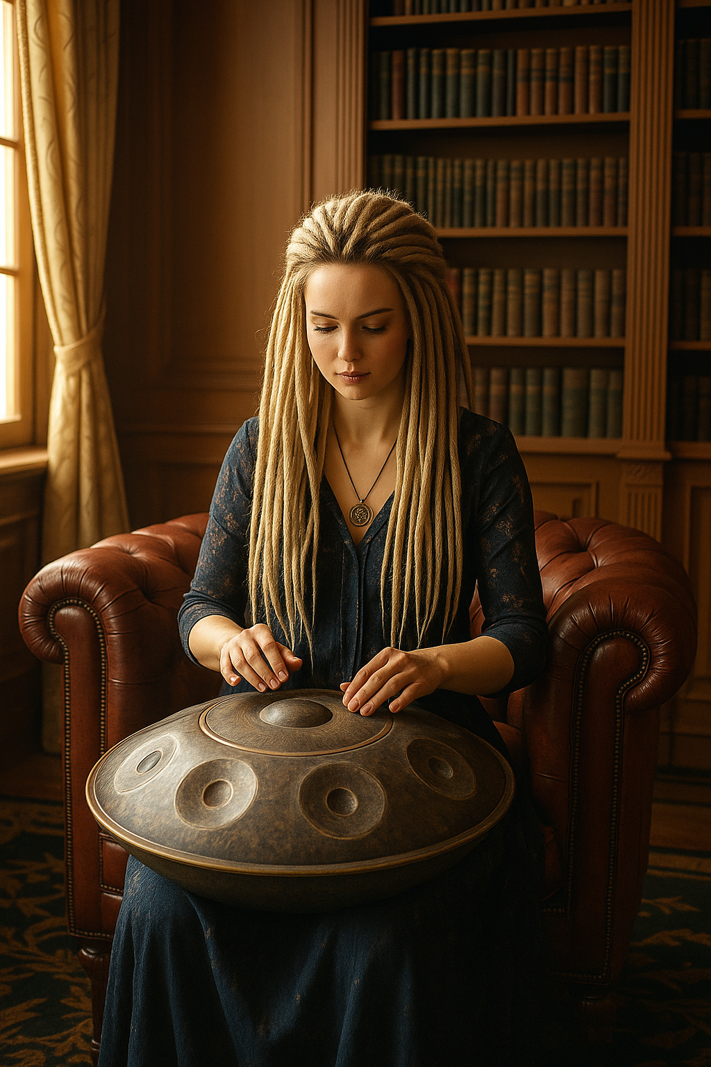 Entre sus manos sostenía un extraño objeto, parecía un platillo volante sacado de una vieja película de ciencia ficción. Lo acariciaba apenas con las yemas, y de esa superficie metálica brotaba un sonido que nunca había escuchado. Era grave, envolvente, como el murmullo de una ola que no cesa. Y entonces sucedió algo imposible: sentí que la música no sonaba fuera, sino dentro de mí. Como si mis órganos fuesen las cuerdas, como si el aire que respiraba fuera el compás.